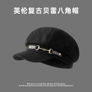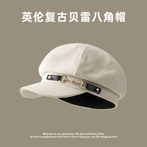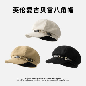 英伦贝雷帽秋冬季新款百搭英伦潮画家帽简约个性八角帽女帽子