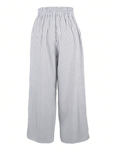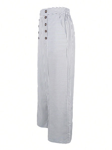 跨境外贸速卖通亚马逊条纹阔腿裤 双排棕扣高腰显瘦款长裤女