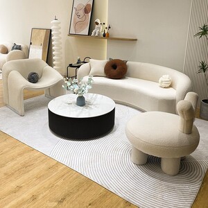 北欧简约现代客厅沙发小户型创意轻奢奶油风服装店弧形网红休息区