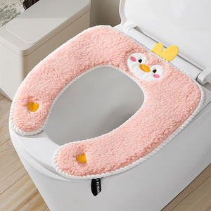 韩式小鸭子羊羔绒粘扣式马桶垫卡通坐便垫通用防水坐便套马桶套