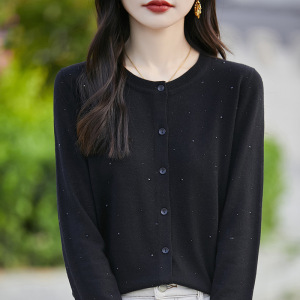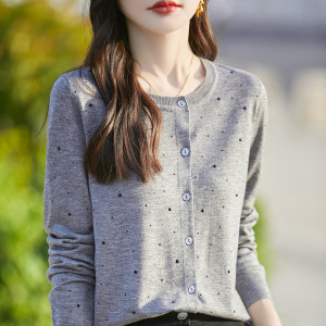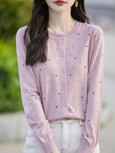 日系烫钻波点针织开衫女秋季新款宽松百搭减龄文艺精纺羊毛外套上