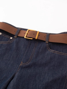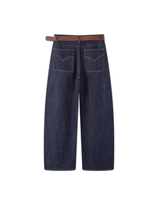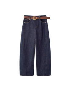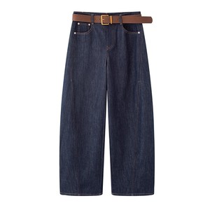 艾**丝2025秋季新款宽松显瘦通勤配腰带直筒牛仔裤长裤AR323109