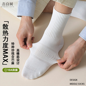 袜子男10A抗菌防臭无骨中筒袜子抽条吸汗透气亚麻运动袜诸暨袜子