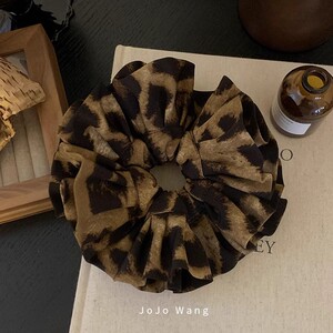 重工超气质大号豹纹发圈女扎头发绣球花朵发饰高级感洋气韩国头饰