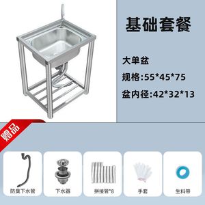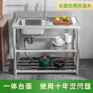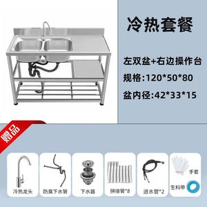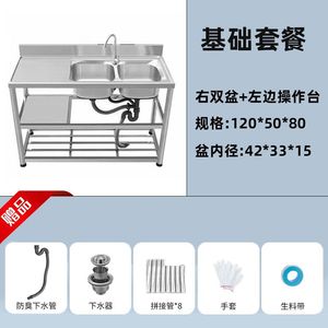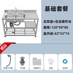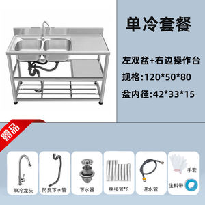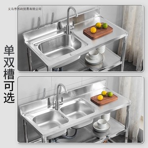 加厚款不锈钢洗手盆家用洗碗池双槽厨房洗菜池台面一体带支架水槽