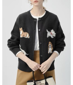 VEGA 毛衣开衫女2025秋季新款纱绒小动物贴布绣针织外套