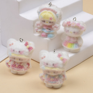 植绒kt猫吊坠可爱树脂diy饰品配件包包钥匙扣手机链车载挂件批发