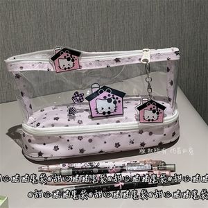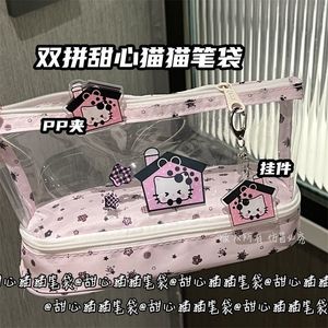 双拼甜心猫咪笔袋ins风高颜值少女心学生便携式大容量收纳笔袋