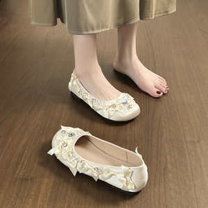软底不累脚平底鞋法式气质配裙子单鞋女2025新款水钻平底玛丽珍鞋