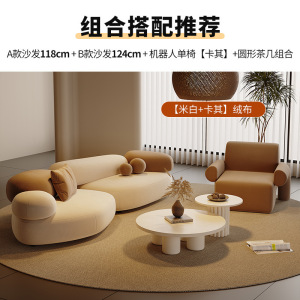 A款+B款+机器单椅+茶几组合【卡其+米白】