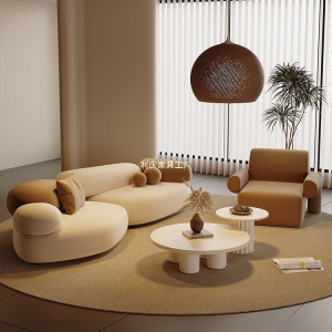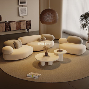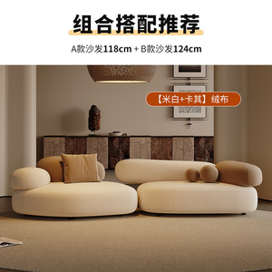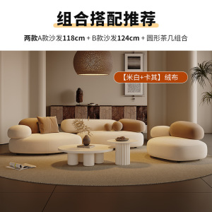 奶油风布艺鹅卵石沙发组合家用小沙发商铺民宿网红创意接待沙发椅