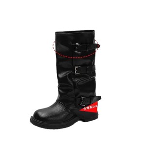 牛皮版~内增高堆堆靴显瘦中筒靴子女英伦风复古皮带扣西部短靴子
