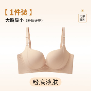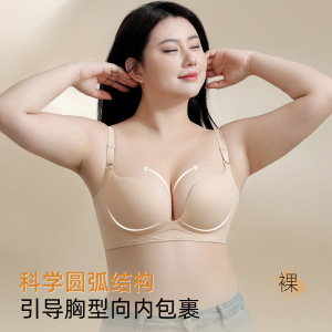 无痕隐形粉底液大码薄款大胸显小内衣女聚拢收副乳防下垂胖mm文胸