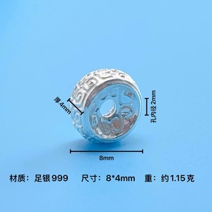 复古祥云纹隔珠大孔隔片散珠 S999足银饰品手链水晶手串diy配件饰
