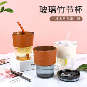创意水杯竹节咖啡杯家用玻璃杯大容量ins风吸管杯子隔热办公室