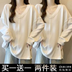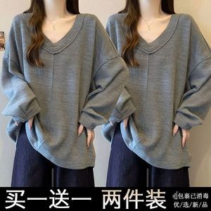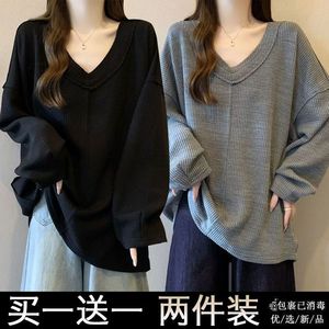 单/两件装大码坑条设计长袖遮肚子上衣2025秋季新款德绒时尚打底