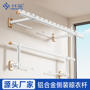 铝合金侧装晾衣杆墙上晒衣杆阳台固定式挂衣杆可折叠防风晾衣架