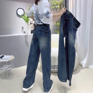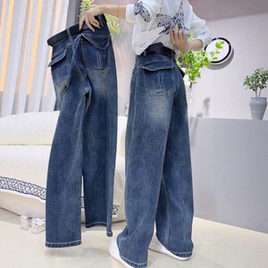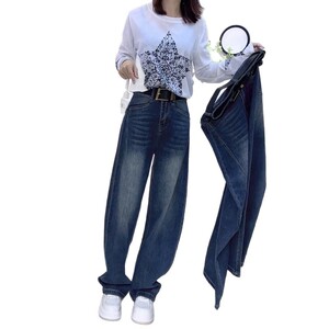 大码窄版阔腿牛仔裤女秋季2025新款高腰胖mm显瘦梨型身材弯刀裤子