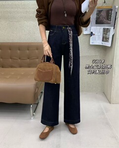 5510秋季新款复古阔腿牛仔裤高腰女小个子窄版九分显瘦直筒奶奶裤