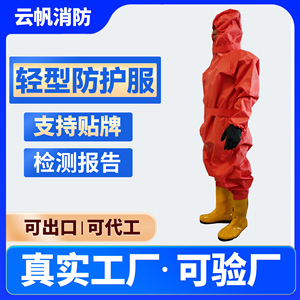 耐酸碱工作服无尘生物防毒半封闭实验化学轻型防护服二级防化服