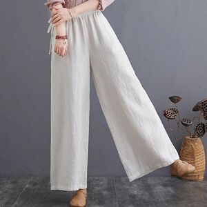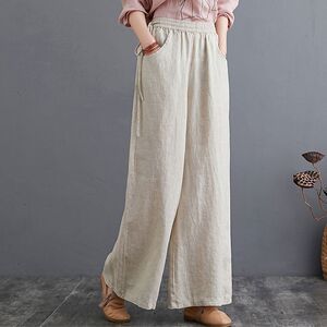 垂感阔腿裤女秋季新款高腰棉麻长裤休闲宽松百搭亚麻料直筒拖地裤