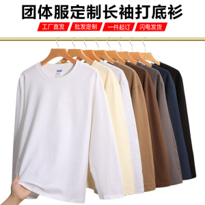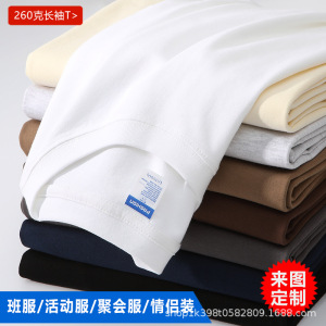 260克重磅纯棉直口长袖T恤圆领加厚打底衫文化衫班服团体服