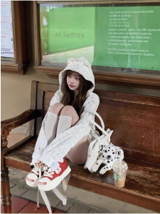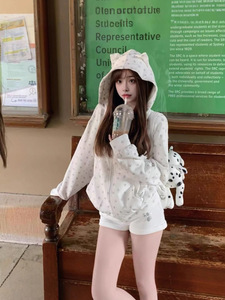可爱小猫耳朵连帽开衫卫衣女春秋新款印花韩系甜辣慵懒风宽松外套