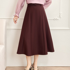 2025秋季新款A字裙女中长款半身裙女百褶裙女裙子6806