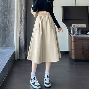 安可拉红工装半身裙女秋季新款高腰松紧腰显瘦休闲大摆字伞裙潮