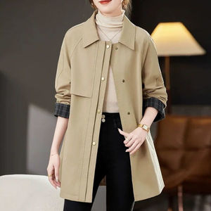 休闲风衣女中长款2025春秋新款设计感气质显瘦大衣外套雪尼尔氨纶