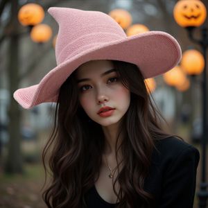 跨境专供棉纱巫师亚马逊爆款针织万圣节女巫帽尖顶可折叠魔法帽子