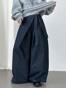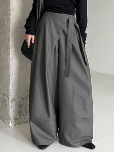 鹿西 绑带不对称高腰阔腿裤女25秋季新款遮跨显瘦通勤休闲裤1709