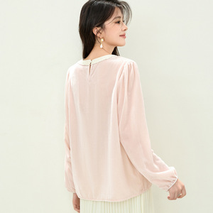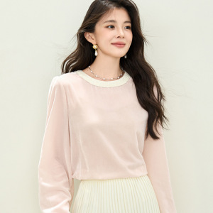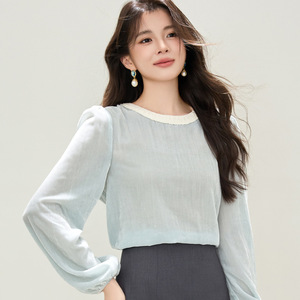 2025秋季新款圆领雪纺衫长袖衬衫女小众上衣2708