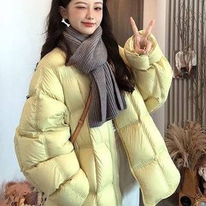 韩版网红泡芙感反季羽绒服女面包服白鸭绒潮小个子保暖多巴胺ins