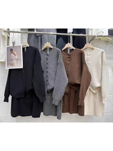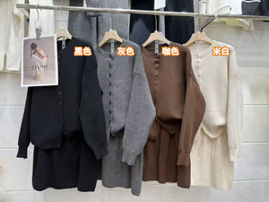 慵懒风穿搭毛衣半身短裙两件套跨境日韩秋冬时尚短裙针织衫套装女