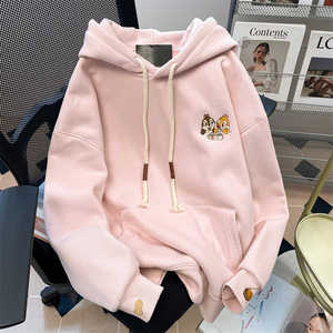 韩系可爱甜美加绒加厚连帽卫衣女秋冬季欧货时尚洋气刺绣上衣外套