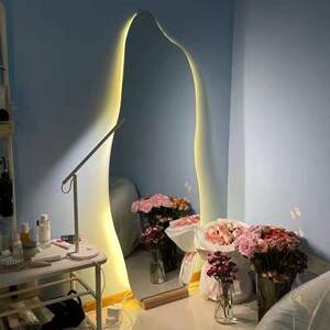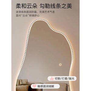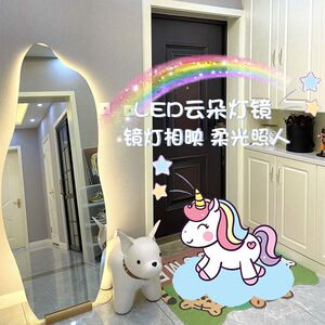 网红ins带LED灯穿衣镜云朵落地式不规则镜子卧室宿舍全身镜