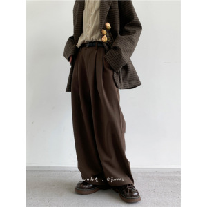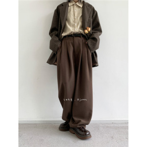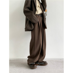 Cityboy春秋日系复古直筒咖啡色西裤垂感男女宽松休闲阔腿长裤子