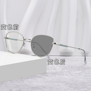 新款变色防蓝光近视眼镜素颜时尚猫眼镜框跨境款亮粉街拍网红眼镜