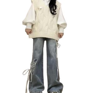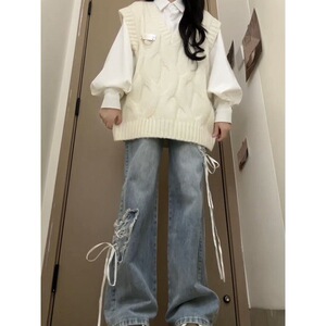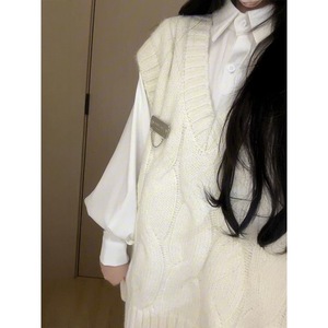 早秋穿搭一整套新品小个子领麻花针织衫马甲背心毛衣+长袖衬衫