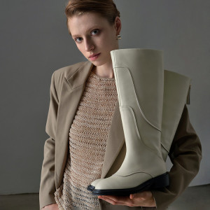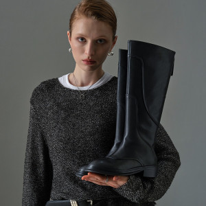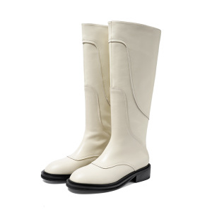 头层牛皮骑士靴女高筒长靴子秋冬新款真皮圆头中跟后拉链不过膝靴