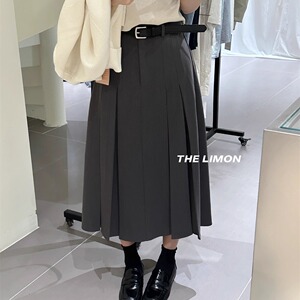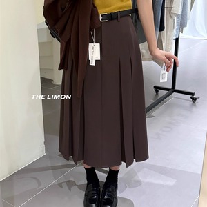 THE LIMON柠檬绿茶2025秋季设计感百褶显瘦西装料半身裙子(配腰带
