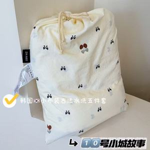 韩国小布袋四件套古法斜纹水洗棉加厚碎花被套云柔棉套件床上用品