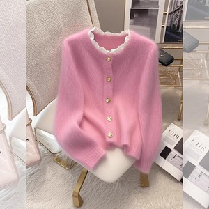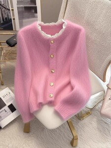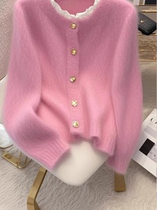 奶fufu慵懒毛衣开衫女款2025新款秋冬季小个子软糯粉色针织衫外套