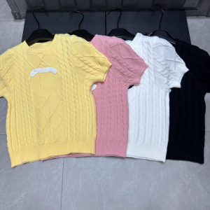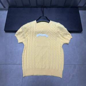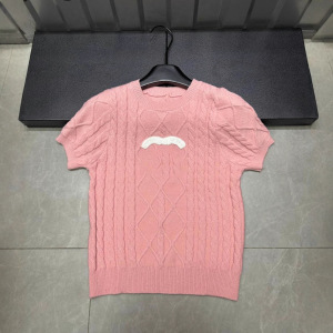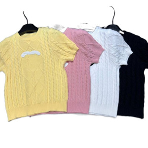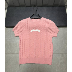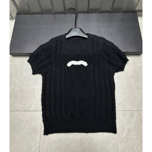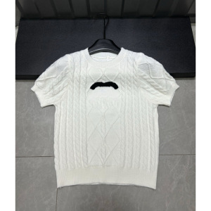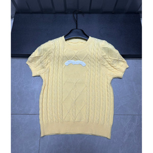 2025年早秋新款香家logo麻花双C针织短袖圆领套头宽松百搭女上衣