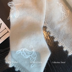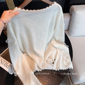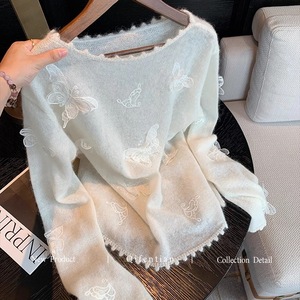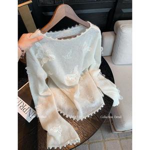 法式白色慵懒风立体蝴蝶刺绣毛衣女秋季新款气质温柔软糯针织上衣