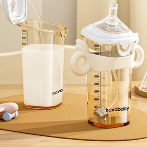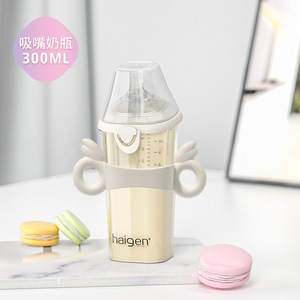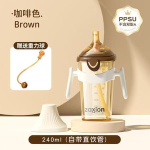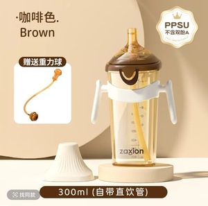 ppsu奶瓶学饮杯翻盖奶婴儿儿童喝水吸管杯6个月--1岁以上喝奶杯