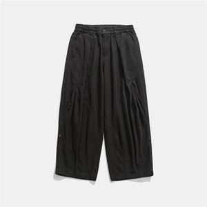 一只小杨24aw日系复古宽松褶皱垂感阔腿裤男女休闲松紧腰工装长裤
