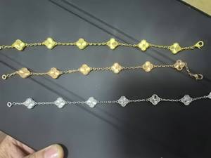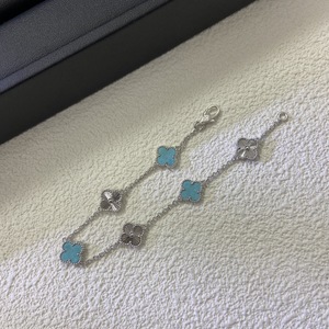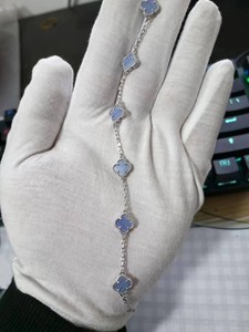 梵家高版本幸运四叶草迷你小号mini六花手链V金白贝母镭射紫玉髓