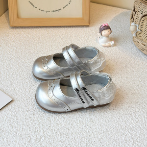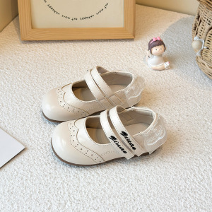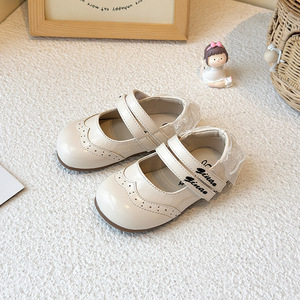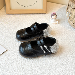 女童小皮鞋2025秋季新款小女孩蕾丝边公主鞋女宝宝魔术贴浅口单鞋